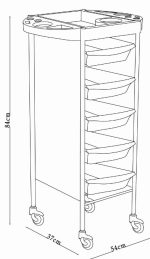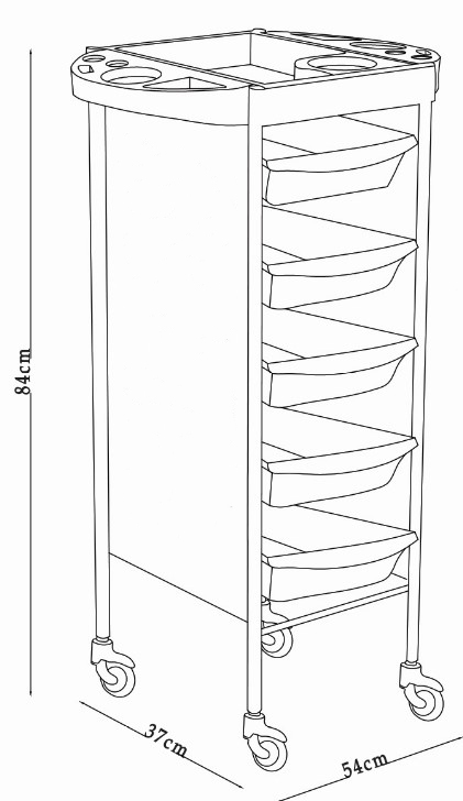 • دارای کشو های متعدد از جنس پلاستیک با کیفیت ABS ضد خش که امکان جانمایی سشوار ، قلم های آرایشگاهی و … را فراهم می سازد